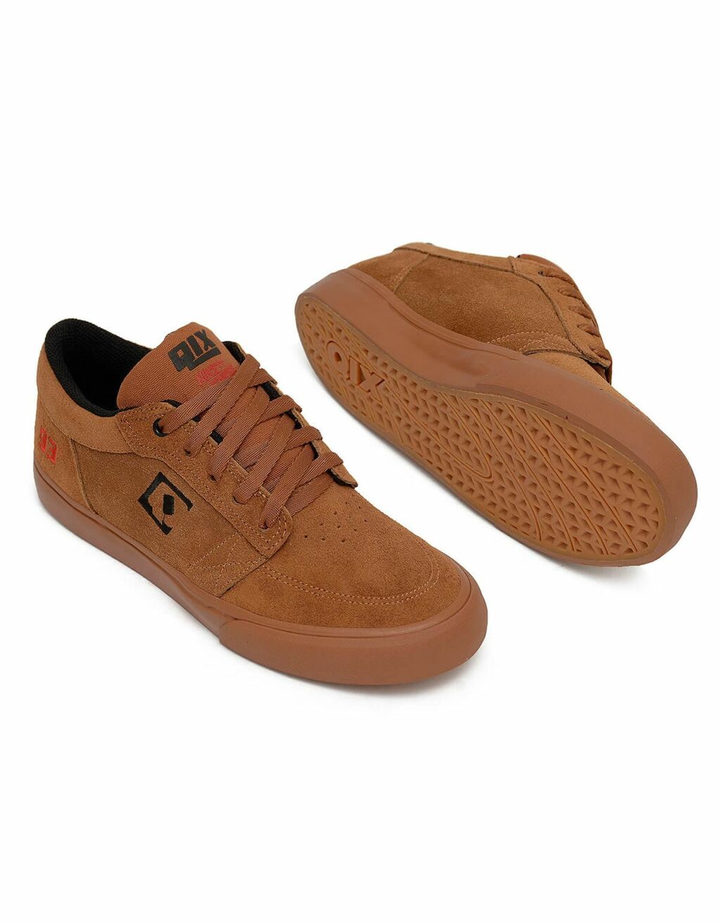 O solado é de borracha natural vulcanizado e possui ranhuras na soleta garantindo maior aderência ao solo. A palmilha é feita em EVA de alta densidade e garante excelente resistência ao impacto do caminhar ou no shape. A forração interna é feita com tecido poliéster e espuma com resistência e durabilidade, a marca QIX está estampado na lingueta, lateral, solado e palmilha.